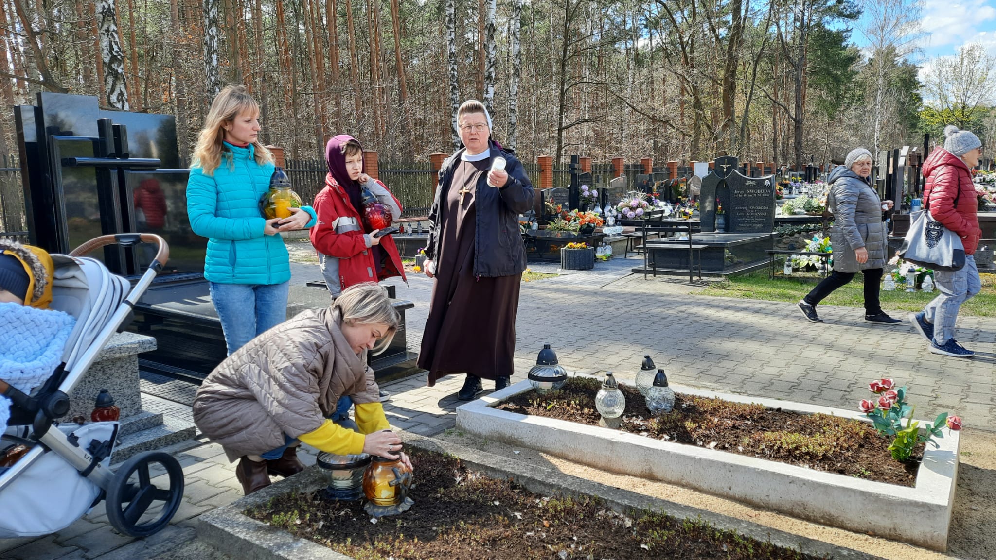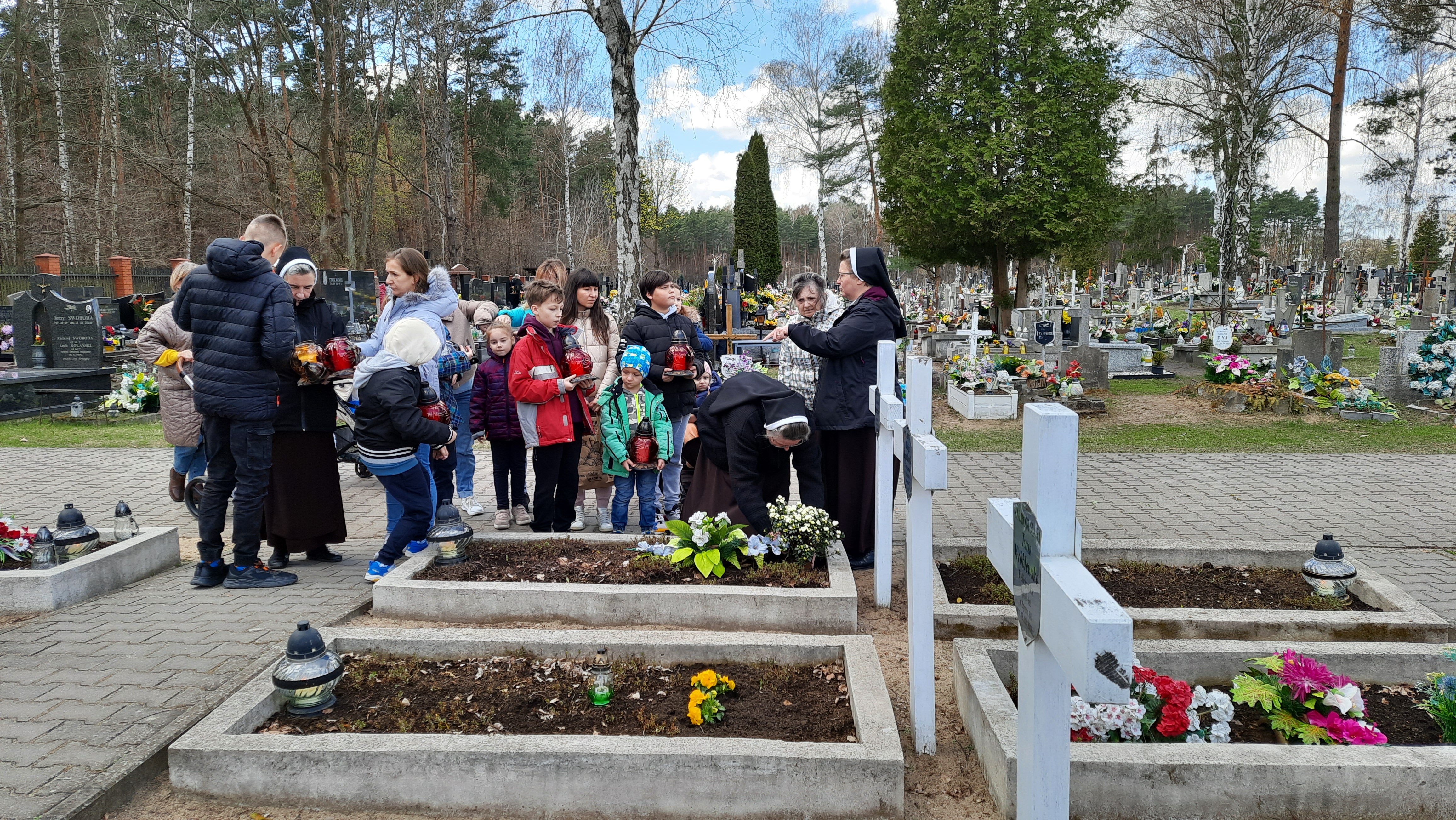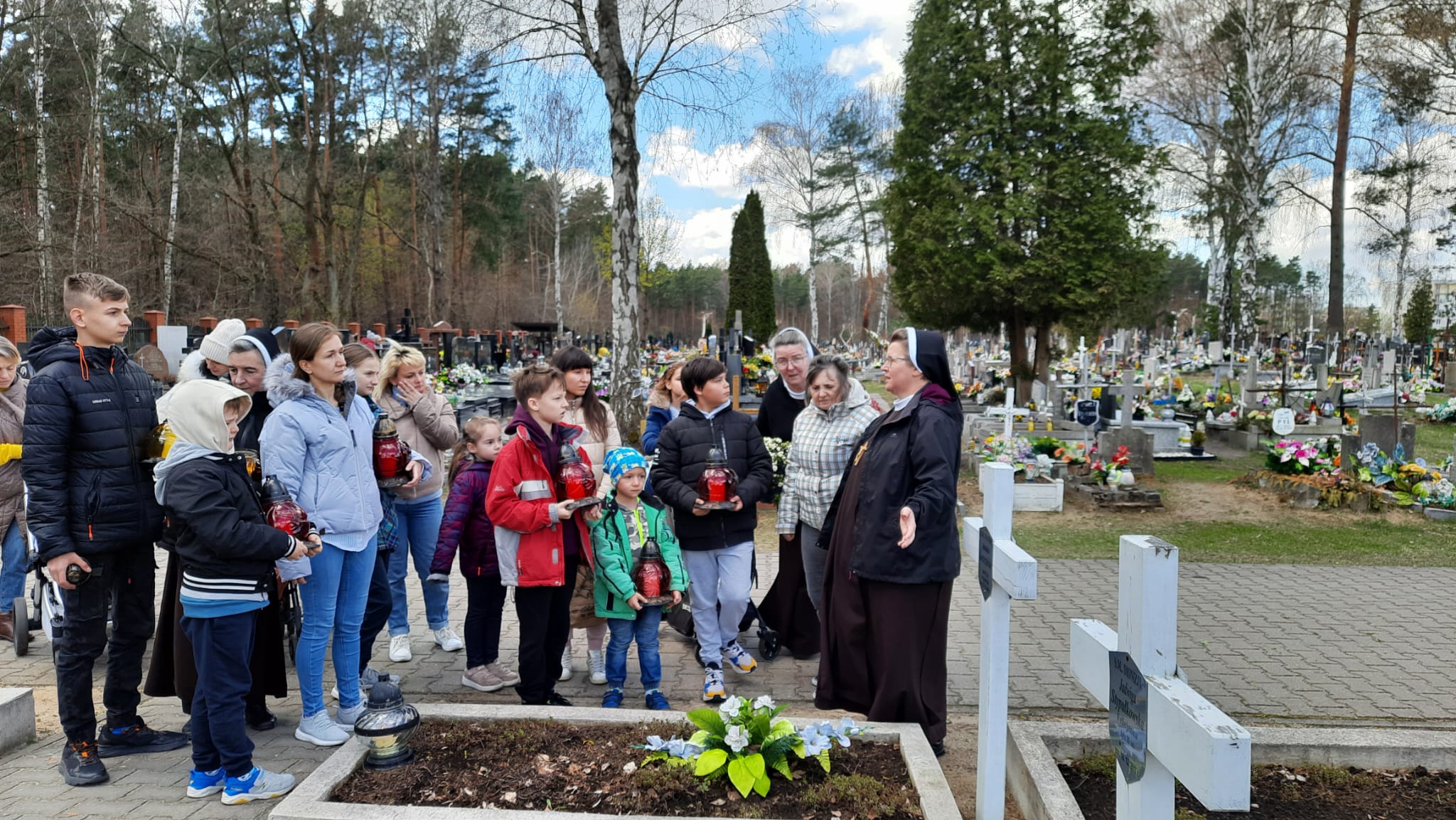 Nasza opieka i pomoc uchodźcom sięga daleko dalej, pomagałyśmy w znalezieniu mieszkania dla ponad 200 osób, zaopatrzeniu w ubrania, leki i potrzebne sprzęty np. wózki, wanienki, itp., w załatwieniu konkretnego leczenia onkologicznego, transporcie. Dużą pomocą w tym była pracująca w naszym Zakładzie przy Nowowiejskiej Pani Ewa B. Dziękujemy.