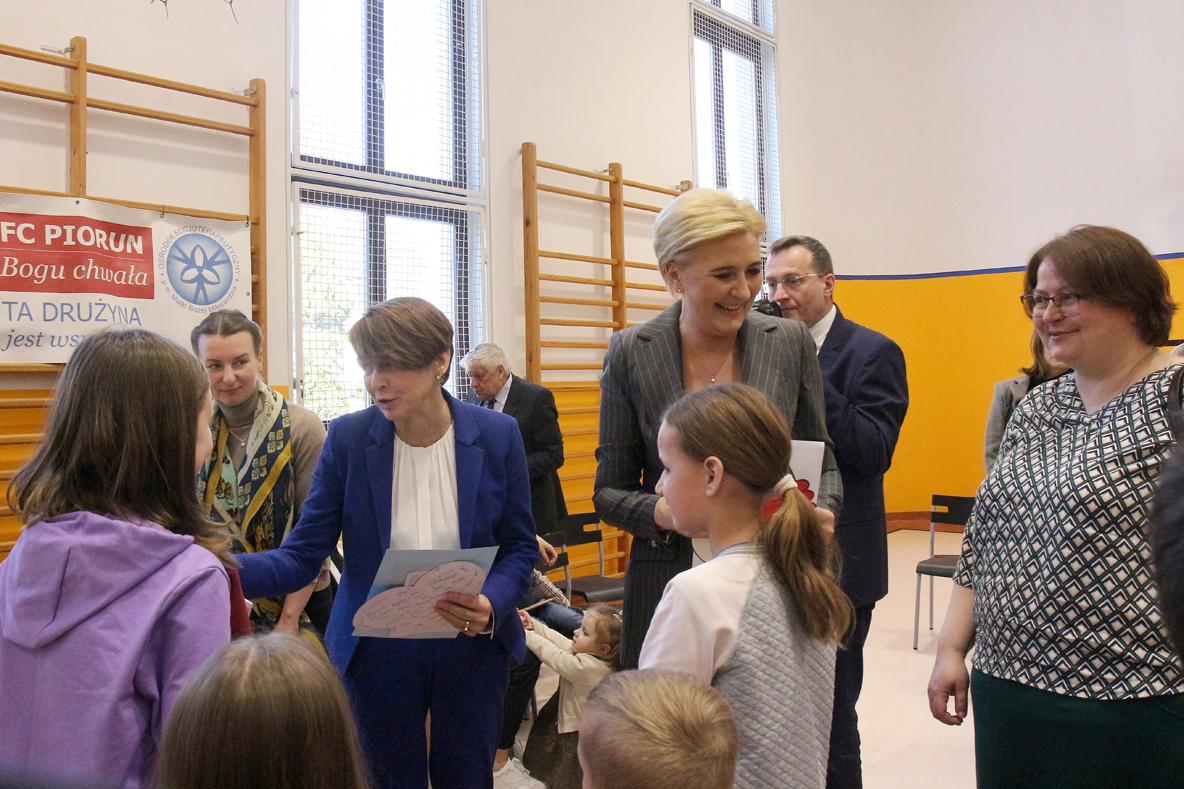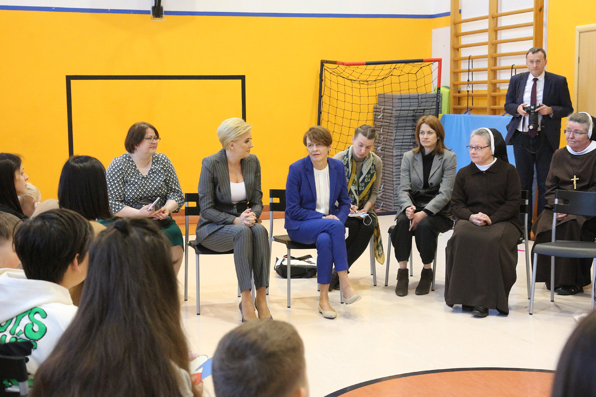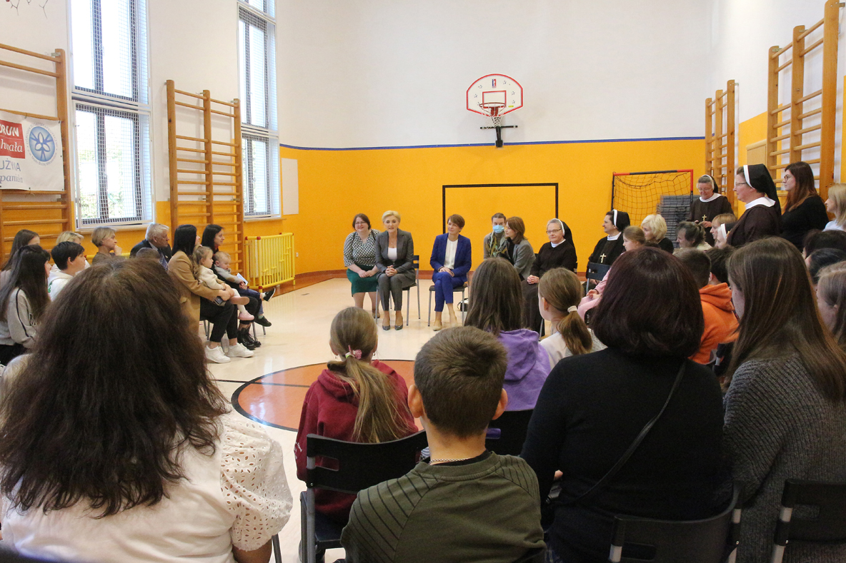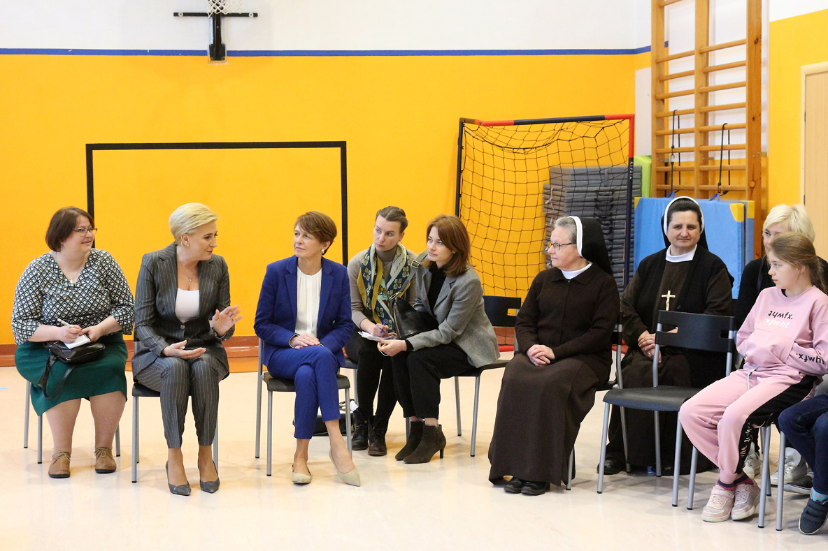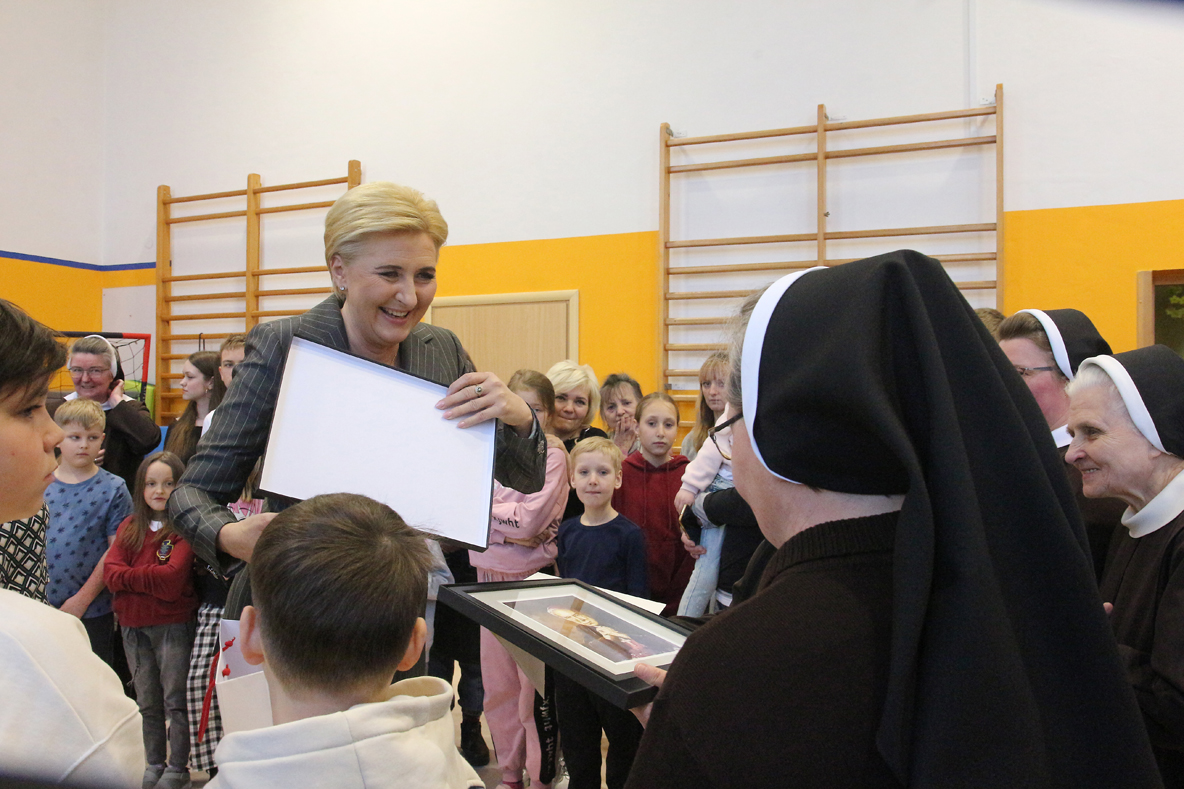 – W trakcie rozmowy z uchodźcami, Agata Kornhauser–Duda powiedziała: „Jestem pewna, że pod opieką sióstr jesteście panie bezpieczne. Zapewniam też, że Polska i Niemcy robią wszystko, by wspierać osoby uciekające z Ukrainy.”