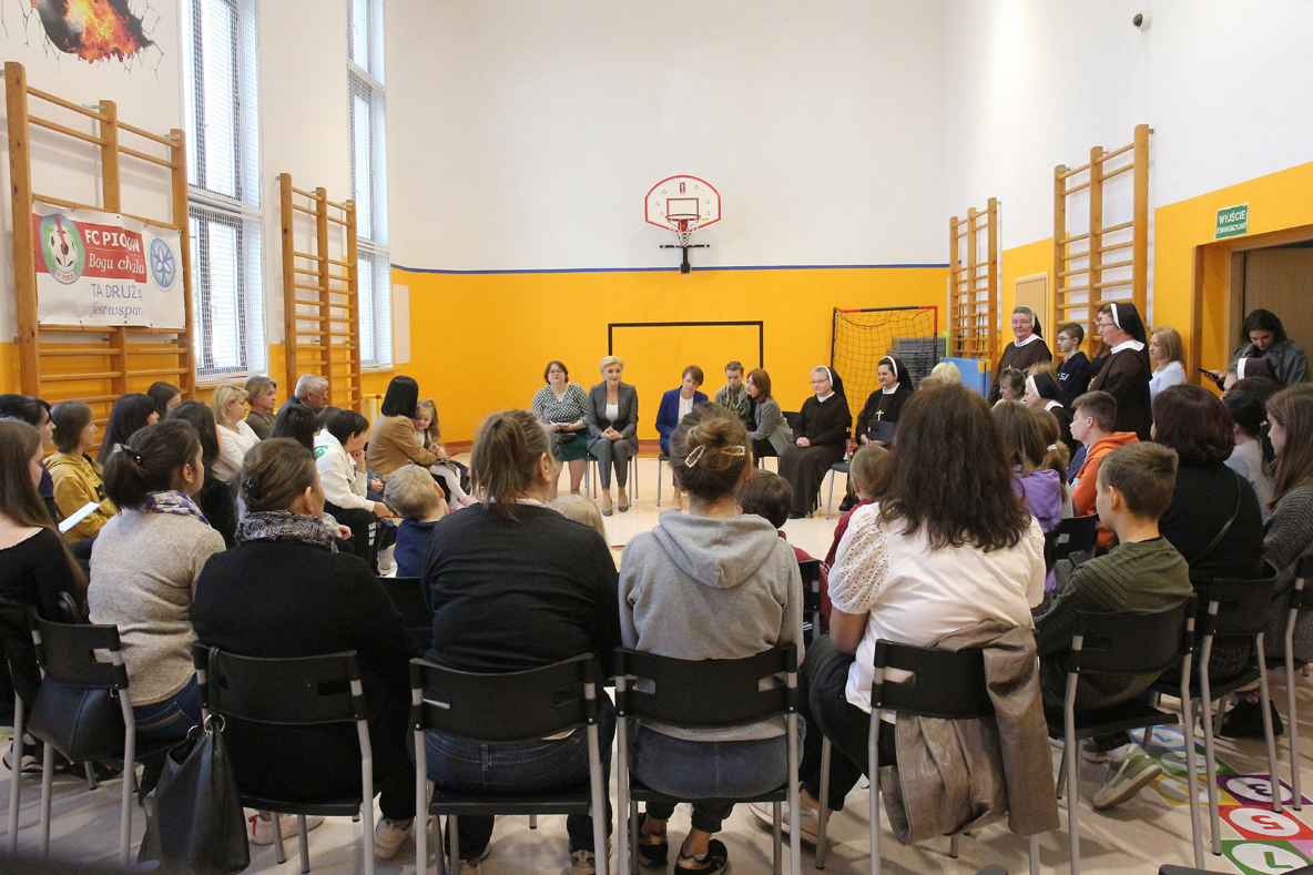 to P Prez12 kwietnia 2022 r. P. Agata Kornhauser–Duda i P. Elke Büdenbender, Pierwsze Damy RP i Niemiec odwiedziły uchodźców, którymi opiekują się nasze siostry w Ośrodku Socjoterapeutycznym przy ul. Azaliowej 10 w Warszawie. W miejscu tym Ukraińcy znajdują schronienie i wyżywienie oraz pomoc w kontaktach z polskimi instytucjami i urzędami.