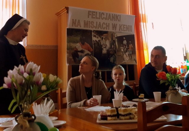 W naszym Ośrodku socjoterapeutycznym przy ul. Azaliowej w warszawie odbyło się pierwsze spotkanie przyjaciół i dobroczyńców naszej Misji w Kenii. Sobotnie przedpołudnie zgromadziło kilkanaście osób, które duchowo i finansowo wspierają działalność Sióstr pracujących w Afryce. Każdy mógł zobaczyć, na dużym ekranie, zdjęcia z Kenii, zadać pytania naszym misjonarkom s. M. Donacie i s. M. Ewie jak również napić się kenijskiej kawy (ciasta były polskie ale również pyszne ;) Eucharystycznej uczcie przewodniczył o. Misjonarz-franciszkanin konwentualny. Spotkanie było okazją do podziękowania wszystkim zaangażowanym w pomoc naszym bliźnim na afrykańskim kontynencie. Dużym zainteresowaniem cieszyło się muzeum misyjne, które można było zwiedzić z najbardziej kompetentnymi przewodnikami jakimi są nasze siostry misjonarki.