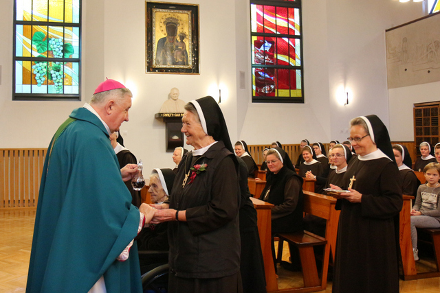 Wspaniałą uroczystość przeżywały Siostry naszej prowincji, dziękując Dobremu Bogu za 80 lat życia zakonnego s. M. Wiktorii i 60 lat również życia zakonnego s.M. Hieronimy. Eucharystii przewodniczył i kazanie wygłosił J.E. ks. bp Romuald Kamiński. Zachęcamy do wysłuchania fragmentów kazania, zarejestrowanych i udostępnionych dzięki życzliwości Radio Warszawa.