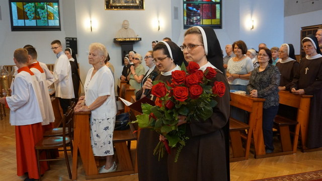 30 kwietnia świętowaliśmy Złoty Jubileusz s. M. Bonawencji, s. M. Estery i s. M. Justicji dziękując Bogu za życie i powołanie trzech Felicjanek, które wciąż służą Bogu modlitwa, pracą i codzienną wiernością. W kazaniu, które wygłosił ks. Kapelan Józef Warzeszak podkreślał, że Siostry są wielkim darem Boga dla Kościoła. Jesteśmy wdzięczni za Sióstr wytrwałość, gdyż 50 lat to czas wytężonej pracy i wierności w zmaganiu. Powołanie wymaga przyjęcia go i współdziałania z Bożą łaską. Kaznodzieja przytoczył wypowiedź bł. Pawła VI papieża, którego zapytano czego potrzebuje Kościół, odpowiedzią jest wierność. Wierność jest konsekwencją i jak dodaje św. Jan Paweł II "Wierność jest próbą miłości". W kazaniu wybrzmiały również słowa, że Bóg jako pierwszy jest wierny człowiekowi, że jest "po naszej stronie i daje moc Ducha" dlatego wierność to dojrzałość człowieka, który odpowiada na miłość Boga.