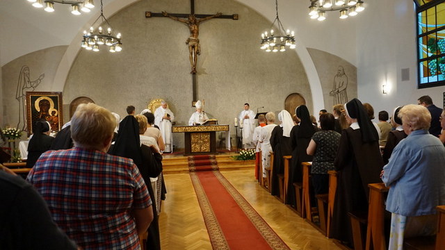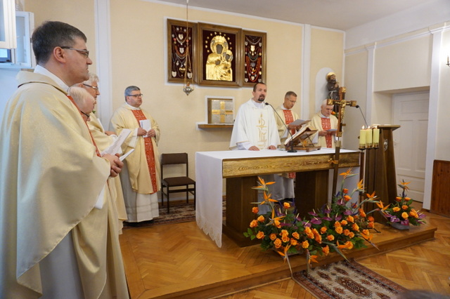 Uroczystej dziękczynnej Eucharystii przewodniczył o.dr Paweł Zając, Przełożony Prowincjalny Misjonarzy Oblatów Niepokalanej, którzy od wielu lat posługują w tym domu jako kapelani. Siostra M.Wirginia, Przełożona naszej Prowincji podziękowała zebranym osobom za przybycie i współtworzenie domu, który przeszedł różne dziejowe perypetie a jednak wciąż jest domem dla ludzi cierpiących, zgodnie z założeniem i pragnieniem ofiarodawców.